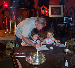 Jimmy with his son Lucas and a friend at La Kasbah. |